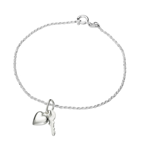 Sterling Silver Rope Chain Bracelet With Key & Heart Charms