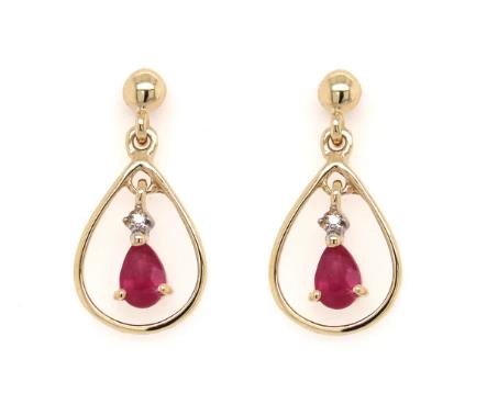 9ct Yellow Gold Ruby & Diamond Earrings