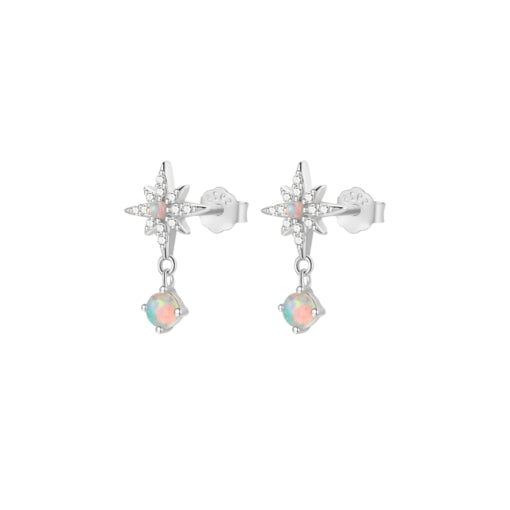 Sterling Silver Petite Cz North Star & Opalite Studs