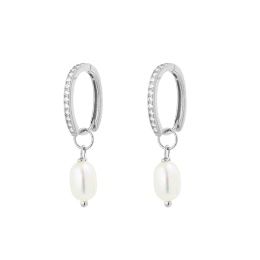 Sterling Silver Huggie Earrings With Cz Detail And Freshwater Pearl