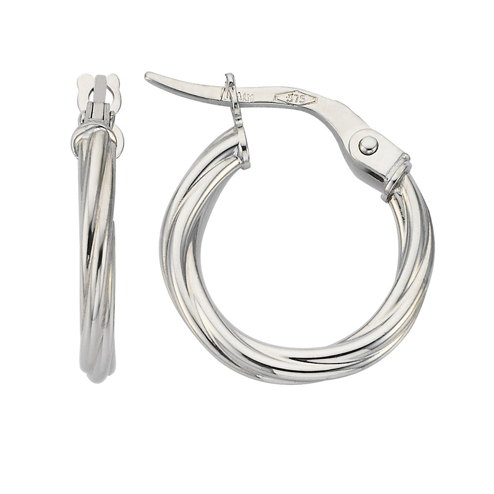 White Gold Twist Hoops - 10mm