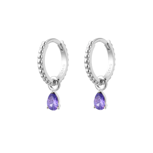 Beaded Huggie Earrings With Light Amethyst Cz Charm
