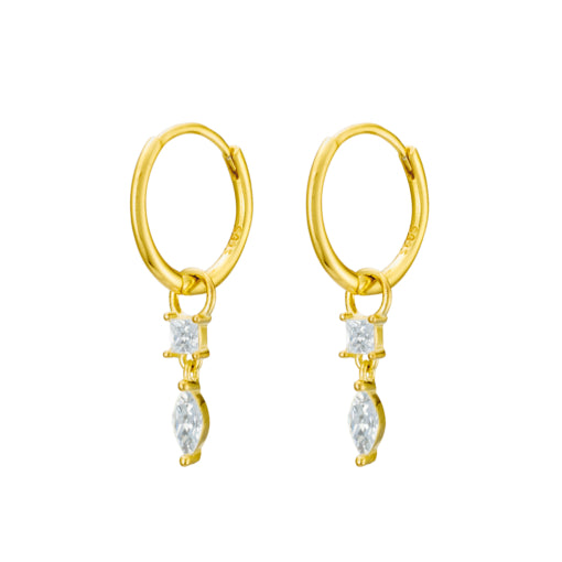 Gold Plated Huggie Earrings With Double Cz Drop