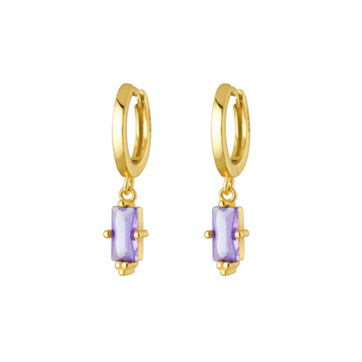 Gold Plated Huggie Earrings With Baguette Cut Light Amethyst Cz